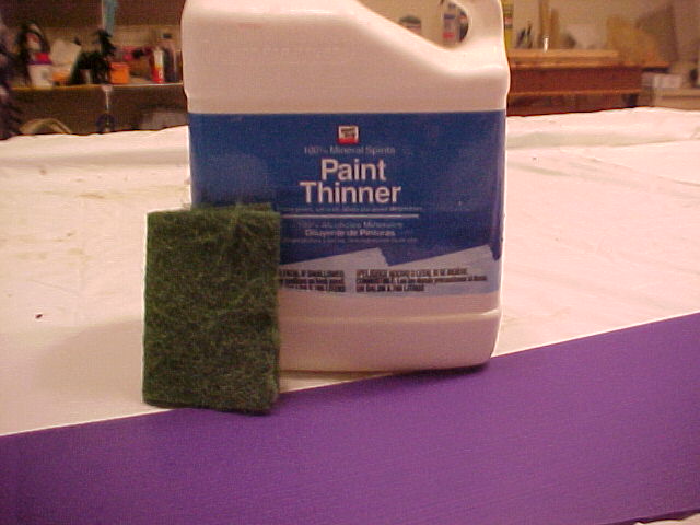 mineral spirits, and thoroughly scrub with the scotchbrite, then wipe dry with a